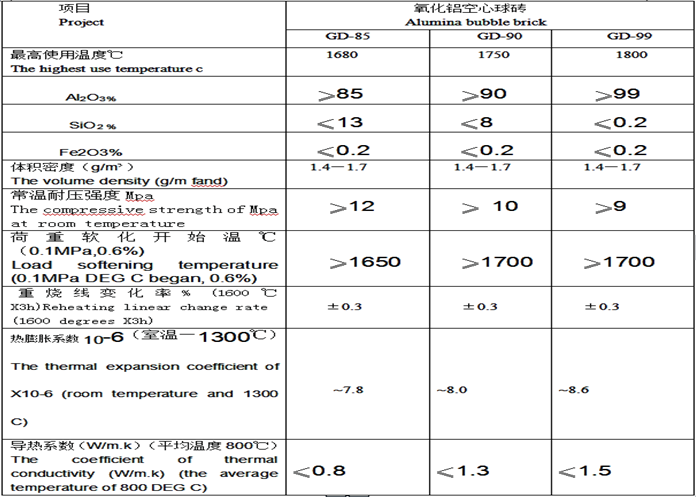 氧化鋁空心球及其制品是一種耐高溫、節能優異的輕質耐火材料,在各種氣氛下使用都非常穩定。特別是于在1800 ℃的高溫窯爐上應用。空心球可用于做高溫、超高溫隔熱填料,高溫耐火混凝土輕質集料,高溫澆注料等。空心球 磚可用于高溫節能( >30%)倒焰窯、梭式窯、鉬絲爐、鎢棒爐、感應爐、氮化爐等。對于減輕爐體重量,改造結 構、節約材料、節省能源,均會取得明顯效果。