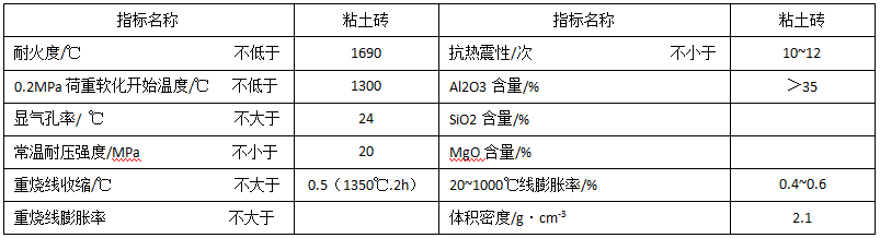 粘土磚是由鍛燒后的耐火粘土(熟料)與部分軟質耐火粘土(結合粘土)經過粉碎混合、成型、干燥、燒成等過程的制成品。粘土磚的主要礦物成分為高嶺石,即耐火粘土和高嶺土,其化學成分為Al2O3• 2SiO2·2H2O占90%以上,其余為K2O、Na2O、CaO、MgO、TiO2及Fe2O3等雜質,約占6%-7%。煉焦爐用粘土磚的理化性能指標見表1-1。