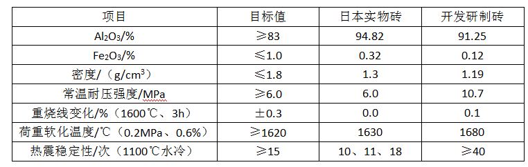 (1)對(duì)日本進(jìn)口的氧化鋁空心球磚的使用情況進(jìn)行總結(jié)和理化性能進(jìn)行分析;