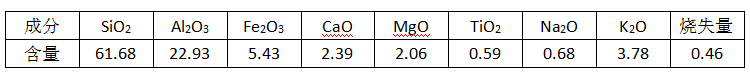 漂珠中Al2O3含量偏低,而含助熔物Fe2O3、CaO、MgO、Na2O、K2O等偏高。經(jīng)檢驗,漂珠的耐火度為1350℃。