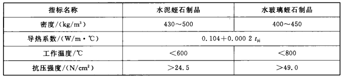 膨脹珍珠巖制品:常用水玻璃珍珠巖制品和水泥珍珠巖制品,制品應(yīng)符合GB10303—1988《膨脹珍珠巖絕熱制品》標準,其性能如下表2